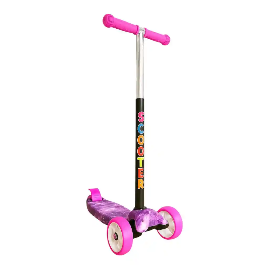 MONOPATIN CON MUSICA QUE FUNCIONA CON BATERIAS AAA LUCES EN LAS RUEDAS LUCES EN LOS LATERALES Fabricado con materiales de alta calidad, como acero al carbono y termoplásticos, el Scooter es resistente y ligero, lo que facilita su transporte y almacenamiento. Con una capacidad para soportar hasta 50 kg, es robusto. Este patinete tiene 3 ruedas que ofrecen una mayor estabilidad y soporte, además de un freno trasero para mayor seguridad durante el uso. Su base ancha y texturizada proporciona un mayor agarre. Con un cómodo manillar y un ajuste de altura, el Scooter ayuda a desarrollar el equilibrio de una manera divertida. Recomendado para niños a partir de 3 años. Material: acero al carbono y termoplásticos - Edad recomendada: a partir de 3 años - Peso máximo soportado: 50 kg - Ruedas: 3 ruedas con LED - Freno: trasero - Base ancha texturizada para un mayor agarre - Manillar con ajuste de altura y control de dirección - Plegable para facilitar su transporte y almacenamiento - Peso aproximado: 2,7 kg