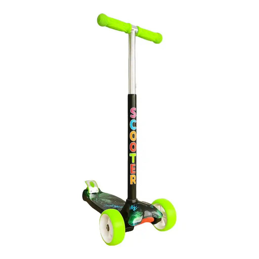 MONOPATIN CON MUSICA QUE FUNCIONA CON BATERIAS AAA LUCES EN LAS RUEDAS LUCES EN LOS LATERALES Fabricado con materiales de alta calidad, como acero al carbono y termoplásticos, el Scooter es resistente y ligero, lo que facilita su transporte y almacenamiento. Con una capacidad para soportar hasta 50 kg, es robusto. Este patinete tiene 3 ruedas que ofrecen una mayor estabilidad y soporte, además de un freno trasero para mayor seguridad durante el uso. Su base ancha y texturizada proporciona un mayor agarre. Con un cómodo manillar y un ajuste de altura, el Scooter ayuda a desarrollar el equilibrio de una manera divertida. Recomendado para niños a partir de 3 años. Material: acero al carbono y termoplásticos - Edad recomendada: a partir de 3 años - Peso máximo soportado: 50 kg - Ruedas: 3 ruedas con LED - Freno: trasero - Base ancha texturizada para un mayor agarre - Manillar con ajuste de altura y control de dirección - Plegable para facilitar su transporte y almacenamiento - Peso aproximado: 2,7 kg