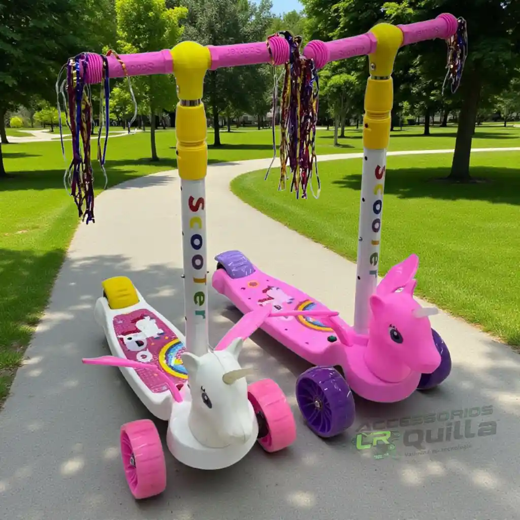 ¡Haz que cada paseo sea mágico con el Monopatín Scooter 3 Ruedas Unicornio! Diseñado especialmente para niños y niñas entre 3 y 8 años, este divertido scooter combina seguridad, estabilidad y un diseño encantador que encantará a los más pequeños. Su estructura firme con tres ruedas ofrece un equilibrio superior, ideal para principiantes que están aprendiendo a manejar por sí mismos. Con un diseño de unicornio colorido y llamativo, este scooter no solo será su medio de transporte favorito, sino también su juguete más querido. El manubrio ajustable permite adaptarse al crecimiento del niño, y su construcción resistente soporta el uso diario, tanto en interiores como en exteriores. --- **Características:** - Diseño infantil con temática de unicornio. - 3 ruedas para mayor estabilidad y equilibrio. - Estructura resistente ideal para niños de 3 a 8 años. - Manubrio ajustable en altura. - Soporta hasta 40 kg. - Uso recomendado en superficies planas, interiores y exteriores. - Incluye accesorios para fácil ensamblado. --- **Beneficios:** - Ayuda al desarrollo del equilibrio y la coordinación. - Estimula el juego activo al aire libre. - Ideal como primer scooter por su seguridad y firmeza.