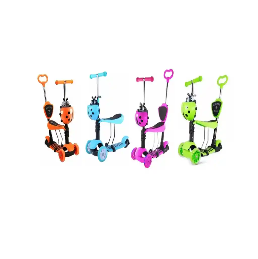 Ofrece a los más pequeños una experiencia de movilidad segura, divertida y adaptada a su crecimiento con este scooter infantil 5 en 1. Su diseño multifuncional permite utilizarlo como patineta, correpasillos, bicicleta de equilibrio y scooter con asiento, acompañando cada etapa de desarrollo desde el aprendizaje hasta la conducción autónoma. Características del producto Diseño 5 en 1 que se adapta a diferentes edades y habilidades. Asiento desmontable y ergonómico, ideal para las primeras etapas. Manubrio ajustable en altura para mayor comodidad y duración en el tiempo. Ruedas delanteras con luces LED que se activan con el movimiento. Base estable con doble rueda frontal para mayor equilibrio. Freno trasero de pie para un control seguro. Materiales resistentes y duraderos aptos para uso diario. Ideal para niños desde aproximadamente 1 a 8 años (según estatura). Beneficios Estimula el equilibrio y la coordinación motriz. Promueve la independencia durante el aprendizaje. Acompaña el crecimiento del niño gracias a sus funciones ajustables. Las luces LED hacen el paseo más seguro y atractivo para los pequeños. Recomendaciones de uso Usar siempre bajo supervisión de un adulto. Ajustar correctamente el manubrio y el asiento antes de usar. Utilizar en superficies planas y seguras. Se recomienda el uso de casco y protecciones. Cuidados del producto Limpiar con paño húmedo y evitar el uso de solventes. Guardar en un lugar seco para prolongar la vida útil de las piezas. Revisar periódicamente tornillos y uniones para garantizar estabilidad. Este scooter 5 en 1 es la opción perfecta para quienes buscan un producto versátil, resistente y atractivo que combine juego, aprendizaje y movilidad en un solo equipo. Ideal como regalo y excelente aliado para el desarrollo infantil.