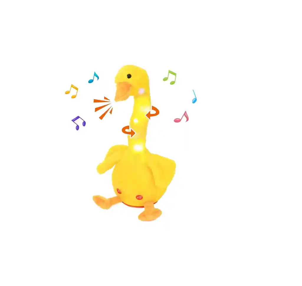 Repite lo que dices: este juguete mágico de pato parece una mascota viva. Los niños pueden interactuar con él y aprender mucho, es muy útil para el entrenamiento de idiomas y se puede utilizar como un buen juguete preescolar. Repite todo lo que dices sin importar si te ríes, cantes o hablas inglés o cualquier otro idioma, puede grabar sonido alrededor de él. Este juguete puede cambiar el timbre original del sonido para que sea en su voz divertida, alta y linda. Cuando todavía está, es un pato elegante. Un juguete interesante para niños: cuando hables con este pato, obtendrás una respuesta, no solo graba y reproduce, sino un tono especialmente procesado, como un loro. Mientras tanto, nuestro juguete tiene la otra función, puede reproducir canciones y seguir bailando mientras se presiona el otro botón. Pulsa un botón, se repetirá Pulsa otro botón, cantará. Desarrollo y ejercicio: este pato es un accesorio de aprendizaje perfecto porque realmente ayuda a tus hijos a desarrollar sus habilidades cognitivas y buenas de comunicación, ejercitar la imaginación, mejorar las habilidades de imitación y estudiar hablar, cantar, caminar de la manera más divertida.