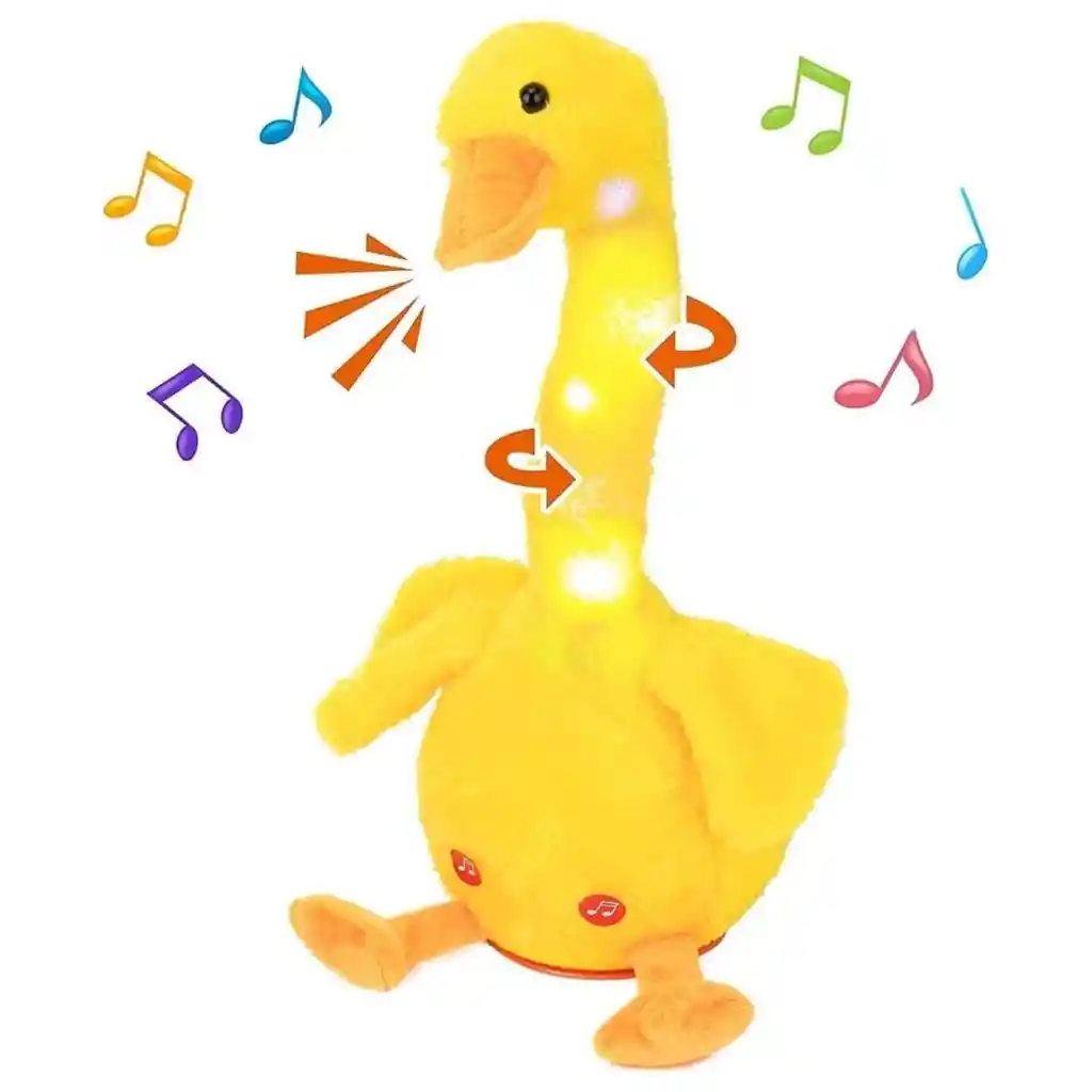 Pato Bailarín Infantil con Música y Luces Recargable USB El Pato Bailarín Infantil es un juguete dinámico y encantador que combina diversión, aprendizaje y movimiento. Su diseño vibrante y sus luces coloridas capturan la atención de los pequeños, motivándolos a moverse, bailar y desarrollar sus habilidades motrices. El pato reproduce canciones animadas mientras se desplaza y realiza movimientos de baile coordinados con la música. Sus luces LED integradas iluminan el entorno, haciendo que el juego sea más entretenido, sobre todo en lugares con poca luz. Funciona con batería recargable por USB, evitando el gasto en pilas. Está fabricado en plástico ABS no tóxico, seguro y resistente a los golpes, garantizando una larga vida útil. Características Técnicas: Material: Plástico ABS no tóxico Funciones: Baile automático, música, luces interactivas Batería: Recargable mediante cable USB Autonomía: 45–60 minutos por carga Edad recomendada: Desde los 2 años Dimensiones: 20 x 15 x 10 cm aprox. Peso: 350 g Un juguete perfecto para fomentar la coordinación, el ritmo y la alegría en los niños durante su crecimiento. Incluye garantía de 30 días.