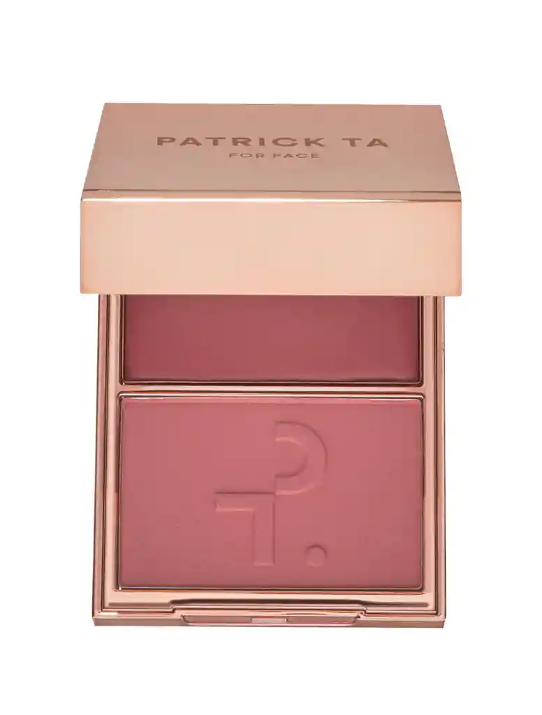 Descubre el icónico rubor dúo de Patrick Ta que combina fórmulas en crema y en polvo en un solo compacto para un acabado radiante y duradero. La textura en crema aporta un toque jugoso y luminoso, mientras que la fórmula en polvo fija el color y define las mejillas con intensidad construible.