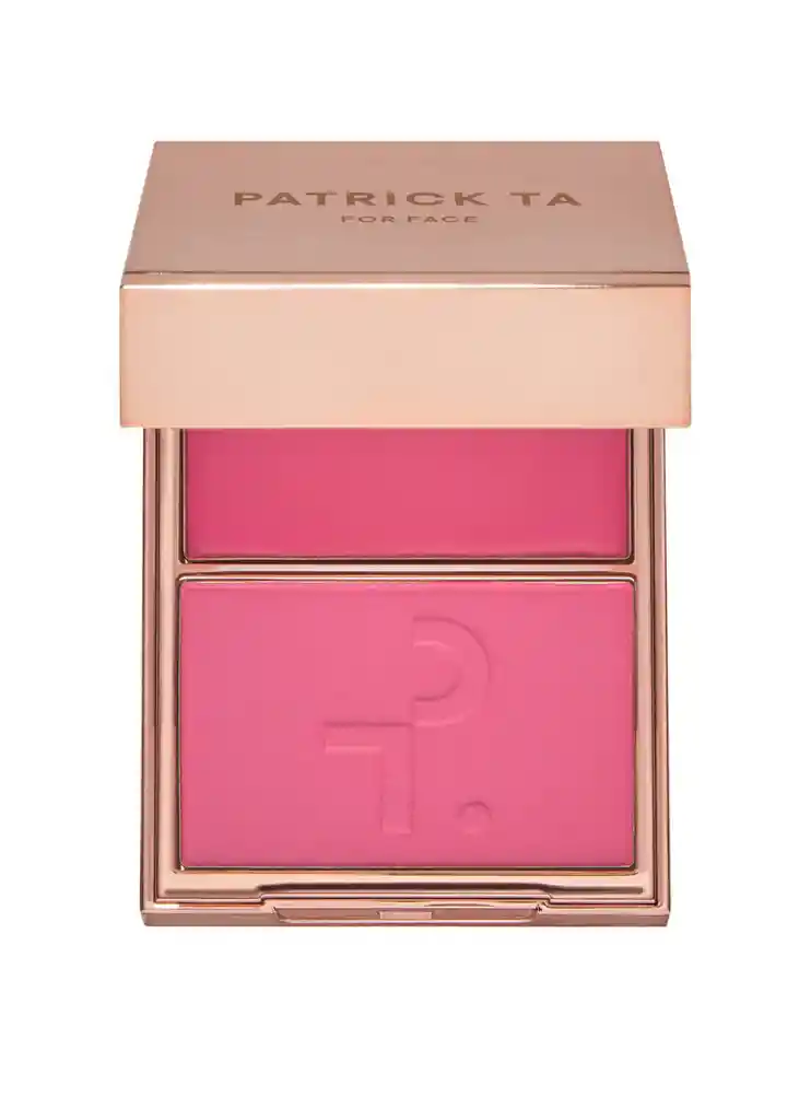 Descubre el icónico rubor dúo de Patrick Ta que combina fórmulas en crema y en polvo en un solo compacto para un acabado radiante y duradero. La textura en crema aporta un toque jugoso y luminoso, mientras que la fórmula en polvo fija el color y define las mejillas con intensidad construible.