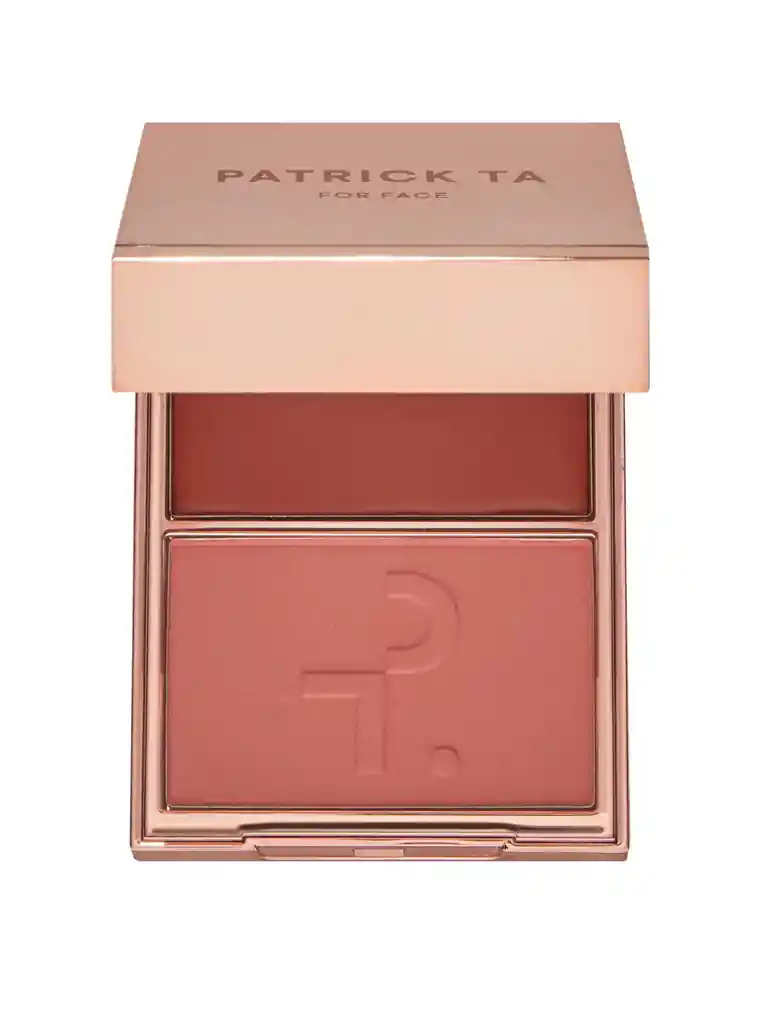 Descubre el icónico rubor dúo de Patrick Ta que combina fórmulas en crema y en polvo en un solo compacto para un acabado radiante y duradero. La textura en crema aporta un toque jugoso y luminoso, mientras que la fórmula en polvo fija el color y define las mejillas con intensidad construible.
