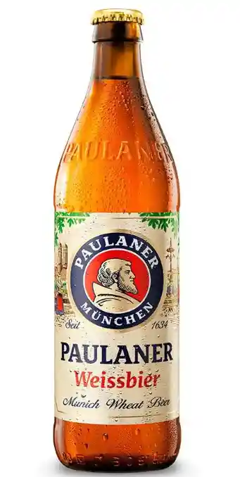 Paulaner Weissbier es una clásica cerveza de trigo alemana (Hefe-Weißbier) estilo Múnich, reconocida por su color dorado turbio, espuma cremosa y notas frutales a plátano y mango. Con un 5.5% ABV, destaca por su suavidad y frescura, siendo una de las cervezas de trigo más populares y apreciadas del mundo.