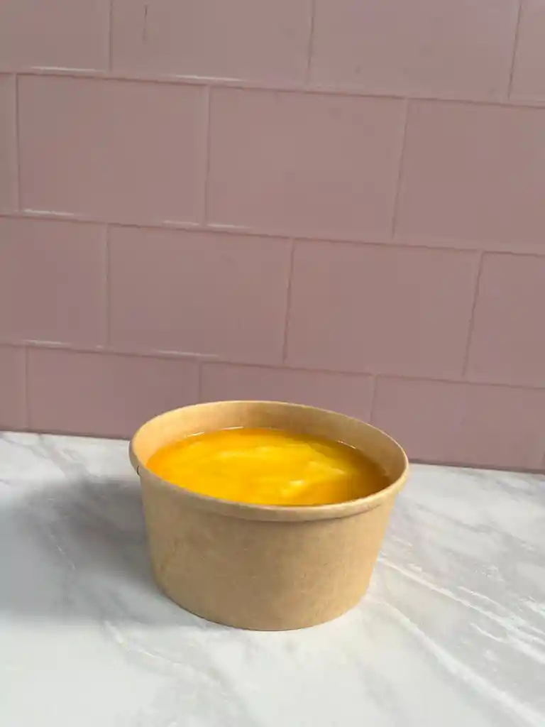 Postre frio, a base de crema de maracuyá y galletas, con topping de maracuyá