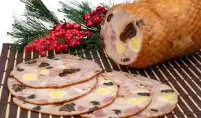 pavo relleno carne pavo, huevos codorniz, ciruela pasa
