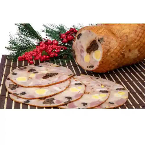 El pavo relleno de Colcarnes es una opción premium de alta calidad, a menudo deshuesado y marinado, que ofrece sabores tradicionales como el agridulce, caracterizado por carne de pavo, ciruelas y uvas pasas, listo para consumir o calentar, siendo ideal para cenas festivas. NOTA: ESTE PAVO SE PORCIONA DE UN BLOQUE Y SE EMPACA PARA CONSUMO INMEDIATO
