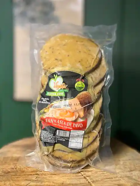 Ingredientes: Proteína de soya, quinua, crema de almendra, proteína de arveja, especias finas (orégano, laurel, pimienta y tomillo). Incluye salsa de ciruela.