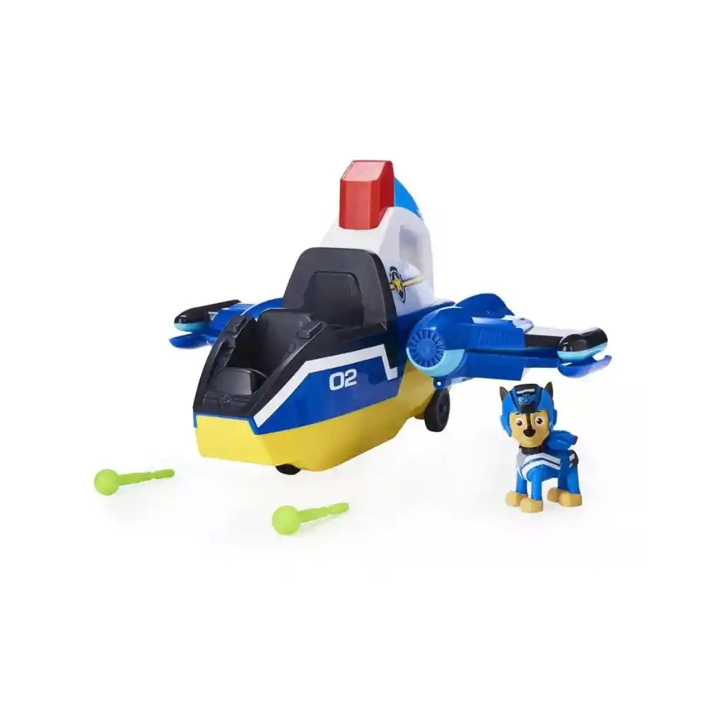 ¡Vuela al rescate con la Patrulla Canina! Este emocionante juguete te permite recrear las aventuras aéreas de tus personajes favoritos de Paw Patrol. Características principales: Diseño realista: El jet está diseñado para parecerse al avión de la serie, con detalles auténticos y colores vibrantes. Luces y sonidos: Al activar el modo de rescate, las alas se despliegan, las luces se encienden y se escuchan sonidos realistas de motor, ¡igual que en la serie! Lanzador de proyectiles: ¡Dispara los proyectiles incluidos para completar tus misiones de rescate! Figura de Chase exclusiva: Incluye una figura de Chase con su traje de piloto, lista para la acción. Espacio para dos cachorros: Además de Chase, puedes colocar a otro cachorro de Paw Patrol (se vende por separado) en el interior del jet. Transformación: Pasa del modo sigiloso al modo de rescate con solo presionar un botón. Material de alta calidad: Construido con materiales resistentes para soportar horas de juego.