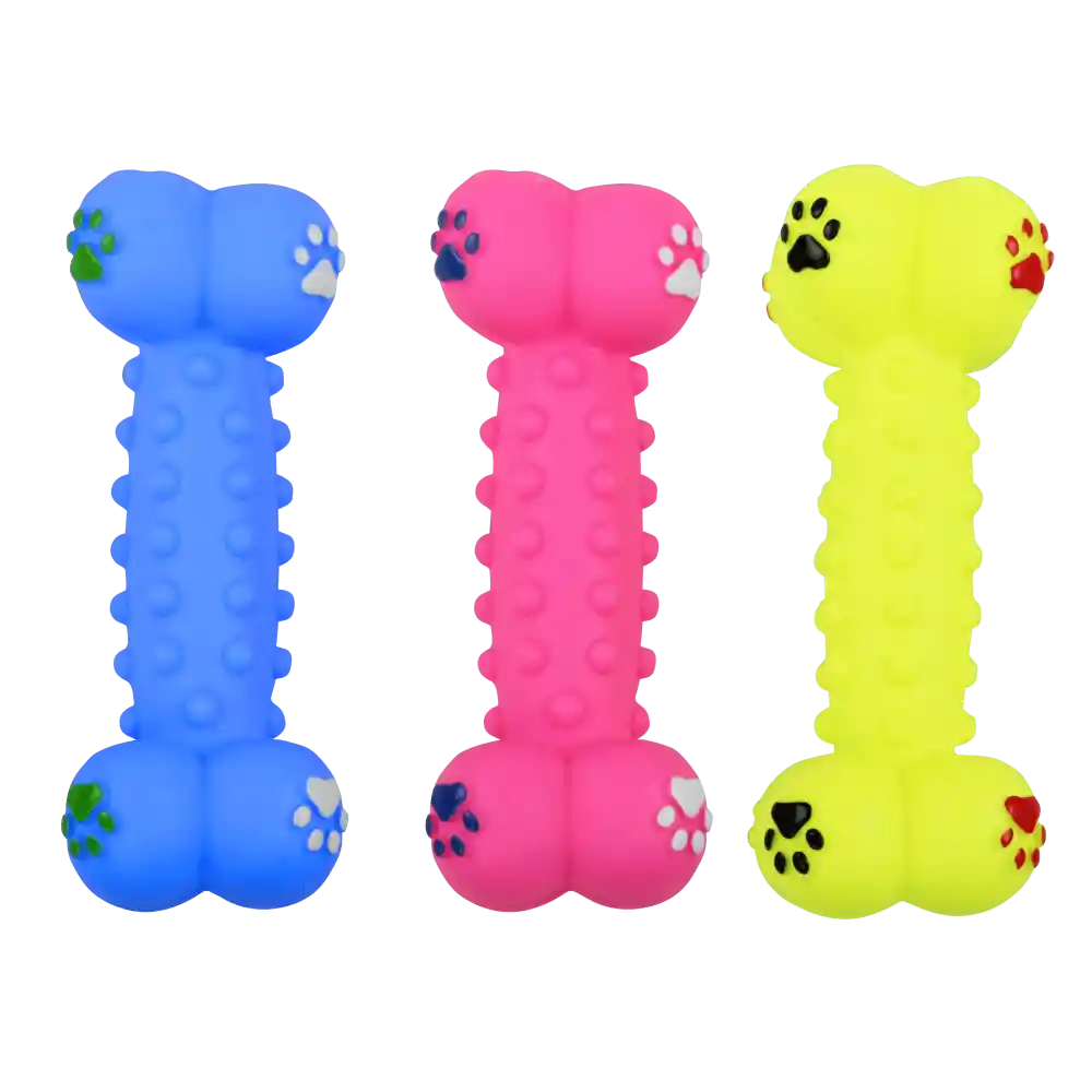 Juguete en forma de mancuerna fabricado en vinilo resistente, ideal para juegos interactivos como lanzar y traer. Sus colores llamativos captan la atención del perro, mientras que su textura contribuye al cuidado dental. Beneficios Fabricado en vinilo resistente. Ideal para juegos de masticación y lanzar y traer. Colores llamativos que atraen la atención del perro. Textura que ayuda a mantener la salud dental.