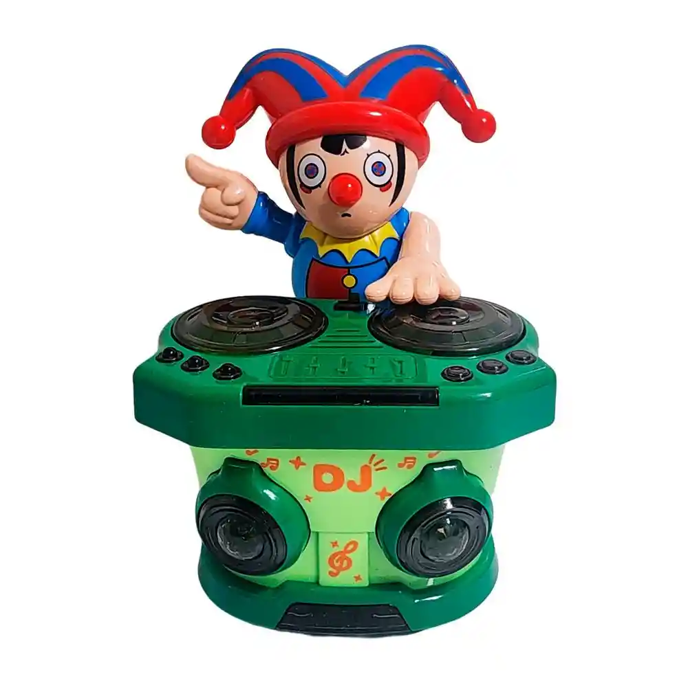 Divertido juguete musical The Amazing Digital Circus DJ Payaso, ideal para niños que disfrutan del ritmo y la diversión. Este simpático payaso DJ cuenta con una consola de mezclas con luces y sonidos que animan el ambiente con cada movimiento. Su diseño colorido y su estilo circense despiertan la imaginación, ofreciendo horas de entretenimiento mientras los pequeños se sienten como verdaderos artistas del show. Perfecto para estimular la coordinación y la creatividad musical. /// El juguete incluye baterías /// Ficha Técnica: Dimensiones del carro : 14 cm x 12 cm x 10 cm Material: Plástico ABS Edad recomendada + 3 Años Fuente de energía : 3 Baterías AA ( Incluidas ) Referencia: JM-1129 HG788-3A Certificado de conformidad: CS-LCO-13233-2021S2/432 ** _Para defectos de fábrica o retractos: \_Por favor revise el producto apenas lo reciba y antes de usarlo. No aplican ley de retracto o defectos de fábrica luego de usar el producto. Se manejan máximo 5 días para reportar defectos de fábrica (por ejemplo, producto funciona mal, piezas faltantes, rotas, etc). Para hacer efectiva la devolución el producto debe devolverse con el empaque original, el cual debe estar en buen estado, incluir todos los documentos y las partes completas y sin daños.