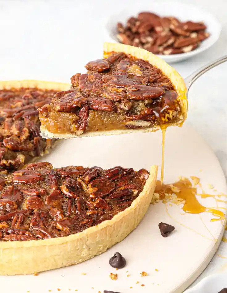 Mezcla de Nueces Pecanas y Caramelo Sobre Una Base de Pasta Quebrada