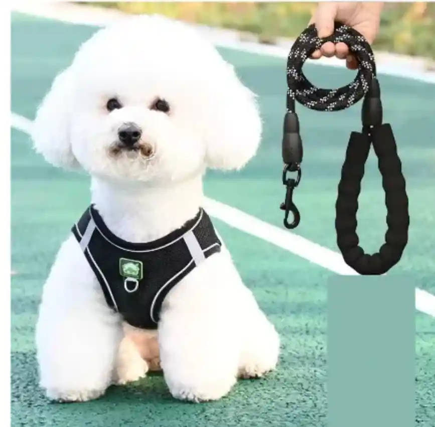 Pechera con traílla para perros, diseñada para brindar comodidad, seguridad y mejor control durante el paseo. Características principales: Material que no talla Diseño ergonómico Fácil de poner y quitar Materiales resistentes (poliéster y nailon) . Incluye arnés y traílla para paseos seguros. Ideal para perros pequeños , ofreciendo paseos más seguros, cómodos y controlados .