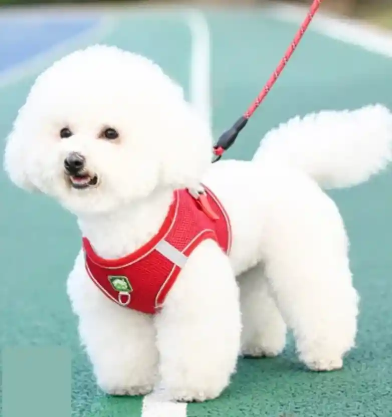 Pechera con traílla para perros, diseñada para brindar comodidad, seguridad y mejor control durante el paseo. Características principales: Material que no talla Diseño ergonómico Fácil de poner y quitar Materiales resistentes (poliéster y nailon) . Incluye arnés y traílla para paseos seguros. Ideal para perros pequeños , ofreciendo paseos más seguros, cómodos y controlados .