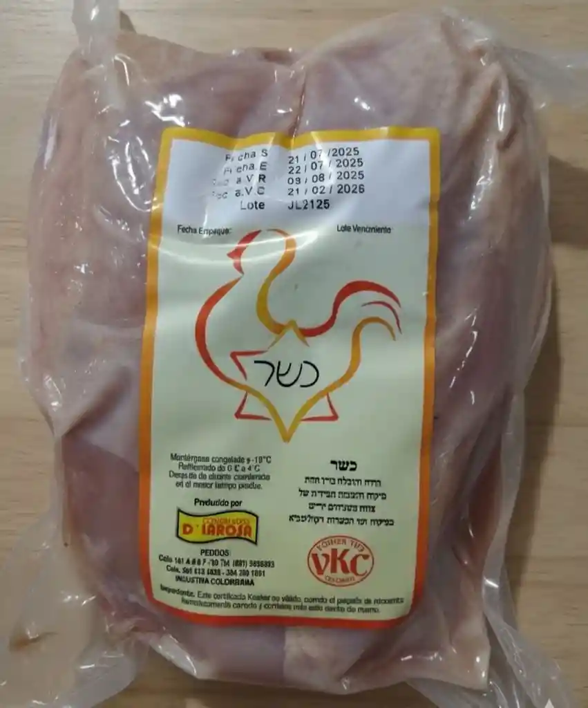 Pechuga de pollo kosher, congelada y empacada al vacio