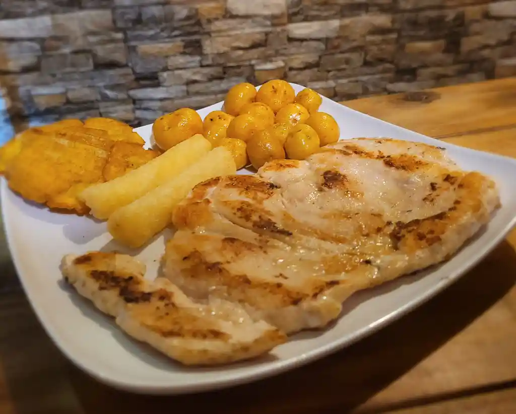 300 gramos de pechuga - patacón- yuca - papa francesa.