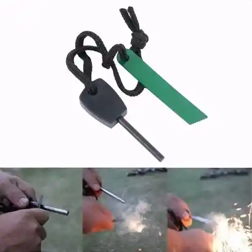 Características• Material: Pedernal (magnesio). rascador (acero)• Tamaño del producto incluyendo mango: 8.5 x 4.4 x 1.5 cm• Longitud de la rasqueta metálica: 7.5 cm.• Peso del producto: 41 g.• Puede ser usado para más de 100 encendidos en cualquier clima.• Este encendedor es excelente para hacer fuego de forma rápida y fácil sin la necesidad de gas o de combustible.• Pedernal de tamaño compacto ideal para llevar a todas partes y ser usado en situaciones de emergencia o supervivencia.• Adecuado para usos militares. caza. pesca. camping y demás actividades al aire libre.Contenido del Paquete• 1 Pedernal para camping y supervivencia.• 100 % Nuevo