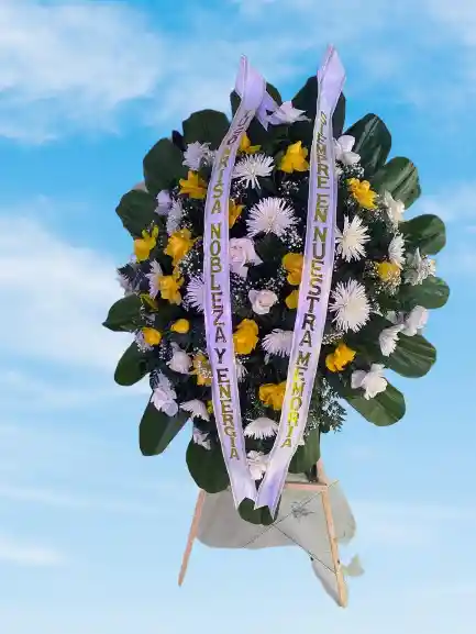 arreglo de flores funebre en pedestal , rosa de excelente calidad en dos tonos, cinta personalizada, domicilio en toda bogota