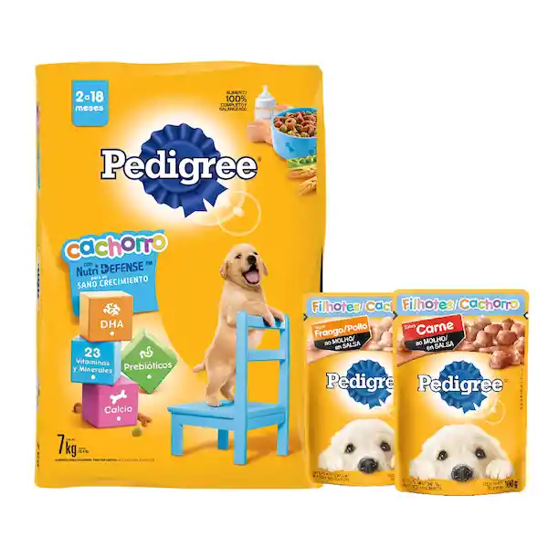 Pedigree Alimento Seco Para Perro Cachorro 7 Kg + Pedigree Alimento Húmedo Para Cachorro Sabor a Pollo + Pedigree Alimento Húmedo Para Cachorro Carne