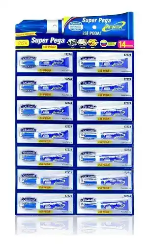 Pega Loca Infinita X 14unidades Pega Loca Infinita X14 Und es el adhesivo ideal para tus proyectos de manualidades y reparaciones. Su fórmula líquida permite una aplicación precisa y efectiva en una variedad de superficies, garantizando un acabado pulido que resalta la calidad de tus trabajos. Este pegamento instantáneo es perfecto para quienes buscan resultados rápidos y duraderos. Con un diseño práctico y fácil de usar, este producto se convierte en un aliado indispensable en tu hogar o lugar de trabajo. Su capacidad de adherencia sin límites te permitirá realizar desde pequeñas reparaciones hasta proyectos creativos más ambiciosos. Aunque es tóxico, su uso responsable asegura que puedas disfrutar de sus beneficios sin preocupaciones.