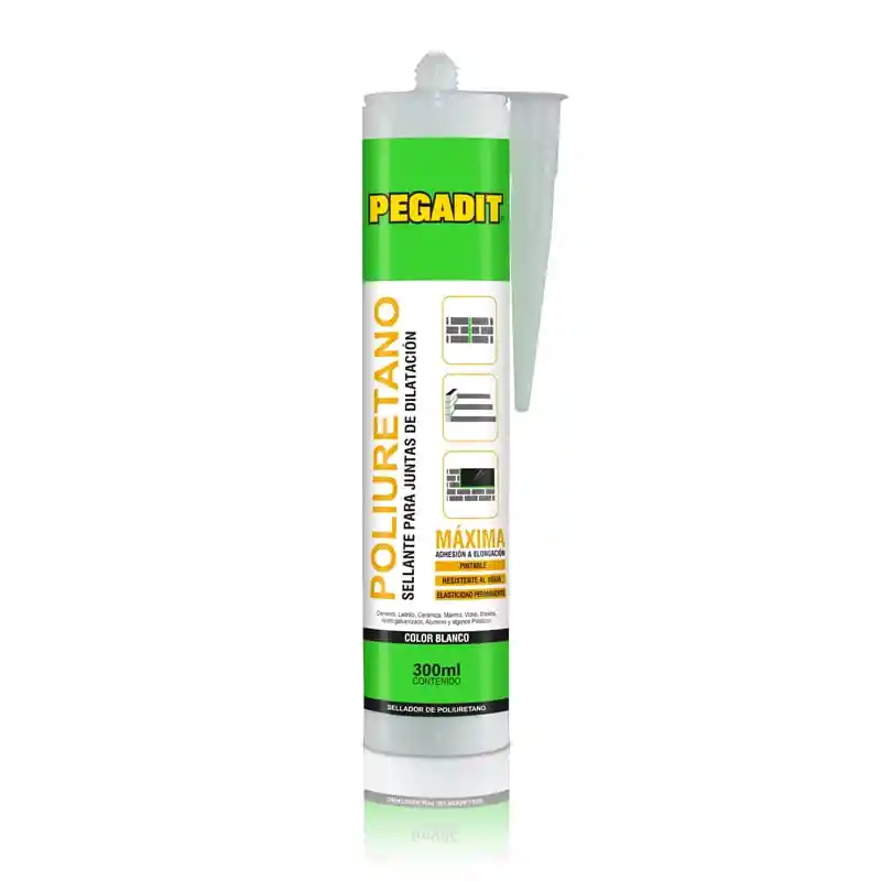 Sellador y adhesivo monocomponente a base de poliuretano, que cura en contacto con la humedad. Ideal en construcción para juntas de expansión verticales y horizontales, marcos de ventanas de aluminio y madera, fisuras, techos, tableros de cornisas, fachadas, muros prefabricados. Aconsejable en materiales como: concreto, hormigón, monteros, ladrillos, aluminio anodizado, acero inoxidable, galvanizado, madera, PVC, sustratos pintados. Color blanco