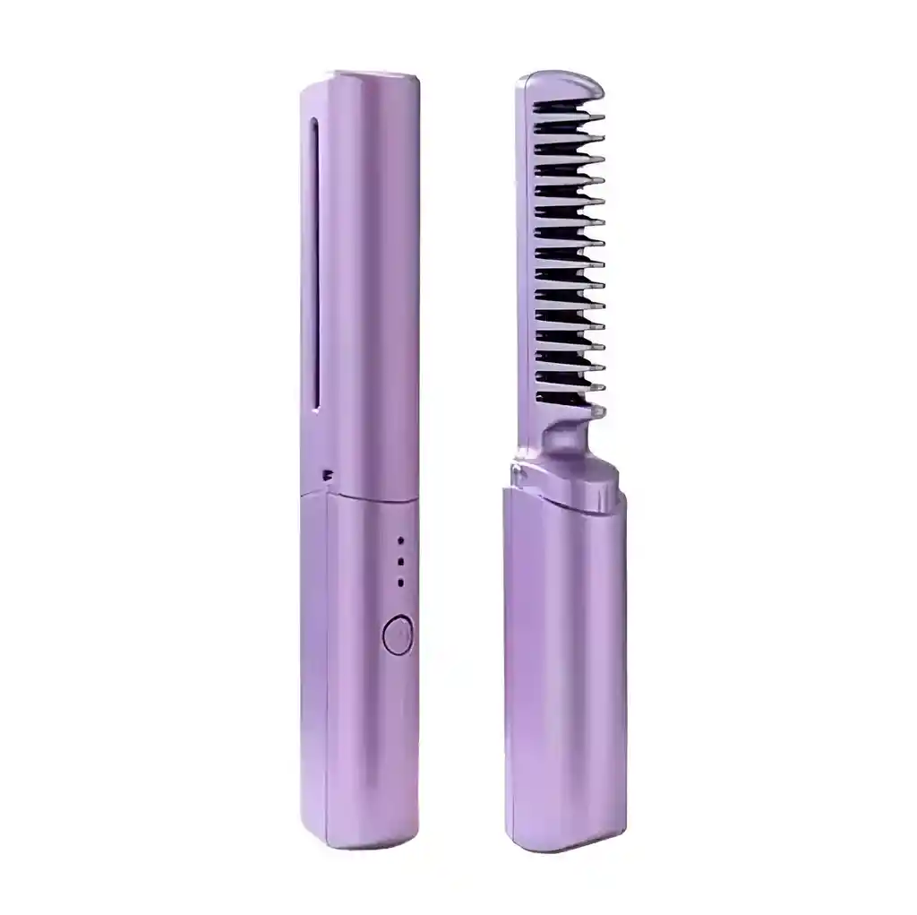 Logra un cabello liso, suave y sedoso en cualquier momento con este innovador peine alisador inalambrico, la solucion definitiva para eliminar el frizz y los enredos de forma rapida y profesional. Su avanzada tecnologia de calentamiento mediante pelicula termica ofrece cambios visibles a simple vista, proporcionando un brillo natural y una manejabilidad excepcional sin las limitaciones de los cables. Con tres niveles de temperatura ajustables (150, 160 y 180 grados), este cepillo termico se adapta perfectamente a diferentes tipos de cabello, desde el mas fino hasta el mas rebelde, garantizando un alisado uniforme gracias a su distribucion de calor balanceada. Su diseño ergonomico, ligero y compacto lo convierte en el compañero de viaje ideal para retoques de ultimo minuto en la oficina o eventos, permitiendote lucir un peinado impecable y con movimiento natural con total comodidad. FICHA TECNICA Nombre del producto: Wireless straightening comb Niveles de temperatura: 3 niveles (150C, 160C, 180C) Temperatura por defecto: 160C Voltaje nominal: 3.7V Frecuencia nominal: 5V - 2A Potencia nominal: 7.5W Elemento de calefaccion: Pelicula de calentamiento Indicador: Luz LED Fuente de alimentacion: Bateria recargable mediante cable USB Largo del dispositivo: 18.5 cm Ancho del dispositivo: 3.5 cm Peso aproximado: 160 gramos Uso recomendado: Cabello seco para mejores resultados POLITICAS DE GARANTIA La garantia tiene una vigencia de 30 dias calendario a partir de la fecha de entrega del producto. Esta cubre exclusivamente defectos de fabricacion en el sistema de calentamiento o fallas en el puerto de carga. No se aceptaran garantias por daños fisicos derivados de caidas, golpes, contacto con agua o por el uso de adaptadores de carga no compatibles que quemen el circuito interno. Es requisito indispensable para procesar cualquier reclamacion que el producto sea devuelto en su empaque original, con todos sus accesorios y que el peine se encuentre limpio de residuos de productos capilares.