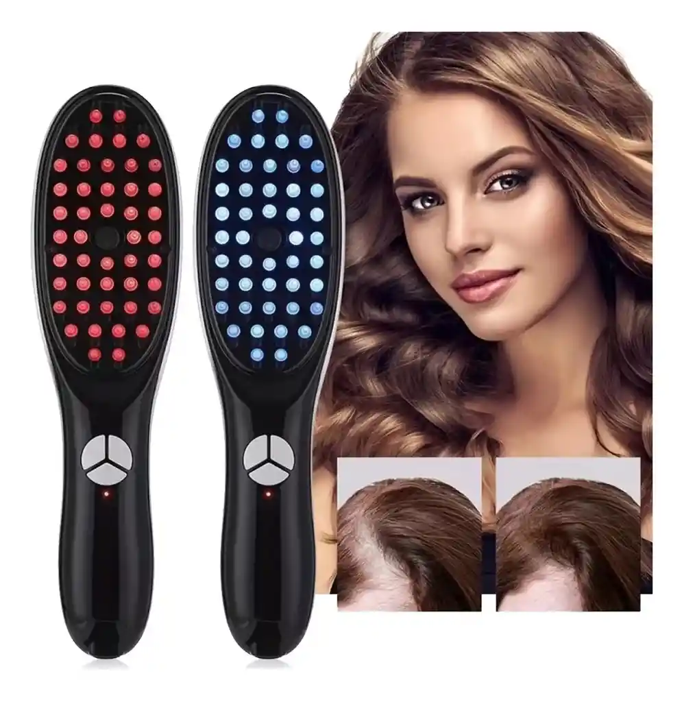 DESCRIPCIÓN DE LOS BOTONES: El peine masajeador tiene tres botones, el de abajo es el botón de encendido/apagado, el botón izquierdo cambia entre luz roja y luz azul, y el botón derecho cambia entre tres modos de vibración de masaje. Después de comenzar, presione brevemente el botón de interruptor nuevamente para encender el modo de vapor. PULVERIZADOR ULTRASÓNICO: Hay un puerto de recarga de líquido en la parte posterior del peine para hasta 20 ml de líquido. La primera vez que lo use, debe dejarlo durante unos 30 minutos para esperar a que el líquido fluya hacia el sensor. APLICADOR DE ACEITE PARA EL CABELLO: El aplicador de aceite para el cabello entrega líquido con precisión al tallo del cabello para una aplicación uniforme y un masaje vibratorio para mantener la comodidad durante todo el proceso de aplicación. Una vez activado, el líquido se aplicará uniformemente al cabello en forma de vapor. MASAJEADOR ELÉCTRICO DEL CUERO CABELLUDO: 3 tipos de modos de masaje de vibración de alta frecuencia de 10000/min, le brindan un masaje relajante del cuero cabelludo. Utilice este masajeador aplicador para el cuero cabelludo en combinación con sueros y más. USO CON: El peine aplicador para el cuero cabelludo es adecuado para sueros, soluciones nutritivas, etc. (Este peine masajeador es adecuado para agregar líquidos a base de agua, no agregue líquidos a base de aceite. Si agrega accidentalmente líquidos aceitosos que causan obstrucciones, puede agregar agua caliente para desatascarlo). Especificación: Potencia nominal: 3 W Voltaje de carga: 5 V Tamaño del producto: 19 x 5,5 cm/7,5 x 2,2 pulgadas Voltaje de funcionamiento: 3,7 V Tiempo de carga: aproximadamente 3 horas Horas de funcionamiento: 90 minutos