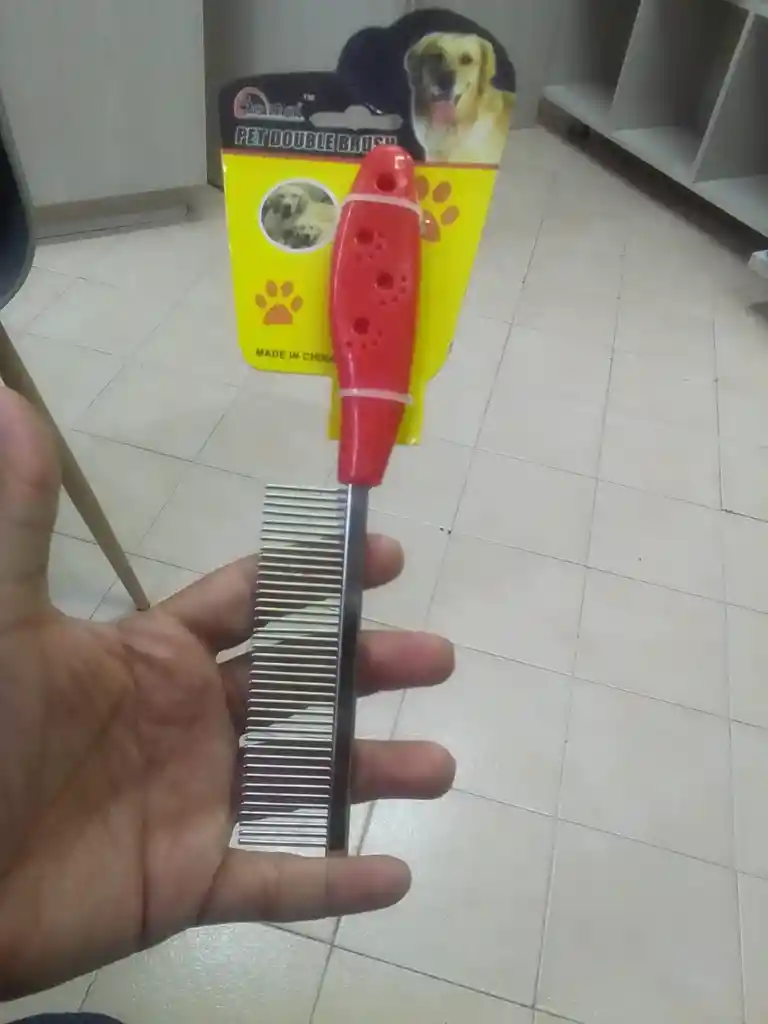 peine para mascota de mango rojo cerdas metalicas de la marca pet double brush