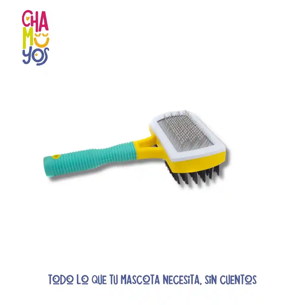 cepillo de cabeza cuadrada mango antideslizante y dos tipos de cerdas : metalicas y sinteticas color amarillo negro ideal razas pequeñas y medianas con pelaje largo o sensibles al cepillado largo 16 cm ancho 10cm* 5 cm