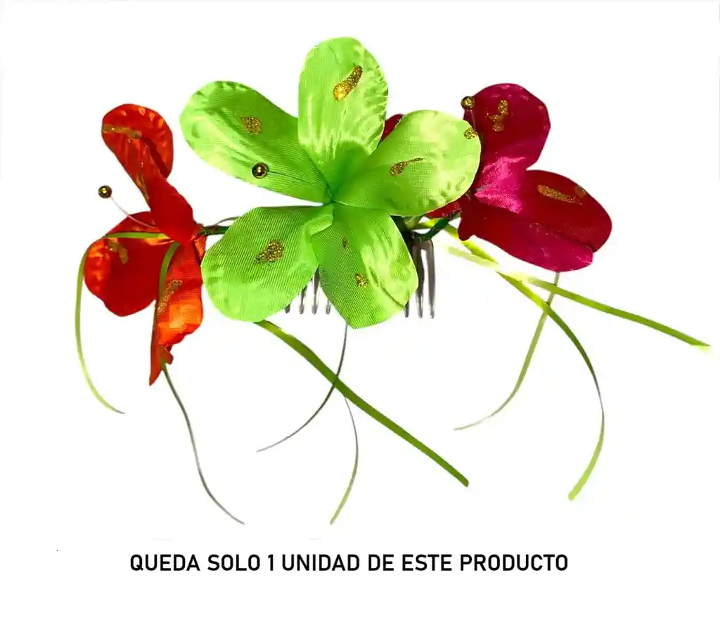 Linda Peineta De 3 Flores Para Hora Loca o Carnaval. La peineta mide 22 x 11 cm Aprox. Cada flor mide 11 x 11 cm Aprox.
