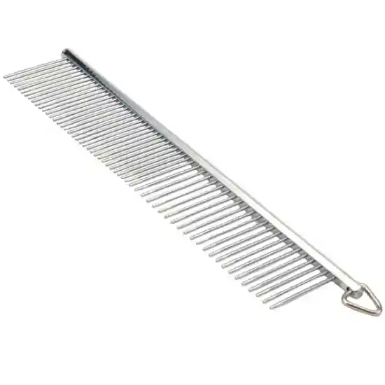 Nuestros peines de aseo canino Safari ayudan a eliminar nudos, enredos y pelo suelto. Sus dientes lisos y redondeados evitan dañar el pelaje. El peine de 18 cm está diseñado para pelajes medianos y gruesos, y el de 11,5 cm, para pelajes medianos y finos.