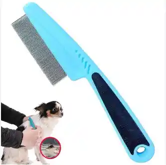 La peinilla para pulgas azul-rosado (tipo calabaza) sirve para eliminar de forma mecánica y segura pulgas, liendres, suciedad y pelo muerto en perros y gatos de todo tipo de pelaje. Sus cerdas metálicas finas y mango ergonómico permiten remover parásitos sin usar químicos, reduciendo la picazón y mejorando la higiene dérmica