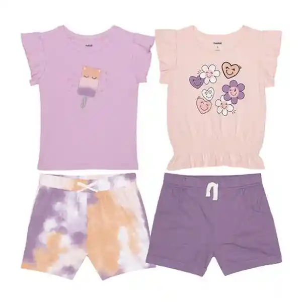 Contiene 4 Unidades. Estos Adorables Conjuntos Han Sido Diseñados Pensando en la Alegría y la Comodidad de Las Niñas Ofreciendo Opciones Versátiles y Atractivas Para Cualquier Ocasión. Cada Conjunto Incluye Una Blusa un Short Una Falda o Leggings. Disponibles en Tres Encantadores Motivos: Paleta Mariposa y Arco Iris. Están Llenos de Colores Vivos y Diseños Alegres Que Capturan la Imaginación y Reflejan la Energía y el Espíritu Juguetón de Las Niñas.
