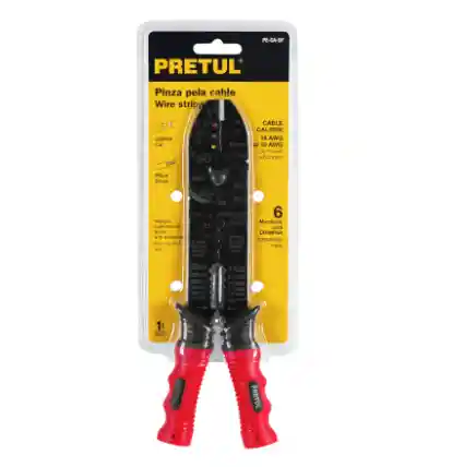 Facilita la tarea de cortar el recubrimiento aislante que protege el cobre para poder pelar el cable sin dañarlo, cuenta con 6 Mordazas para crimpar cables calibres de 18 a 10 AWG Cortador de tornillos y cuchillas de corte Para pelar cables trenzados calibres de 18 a 10 AWG