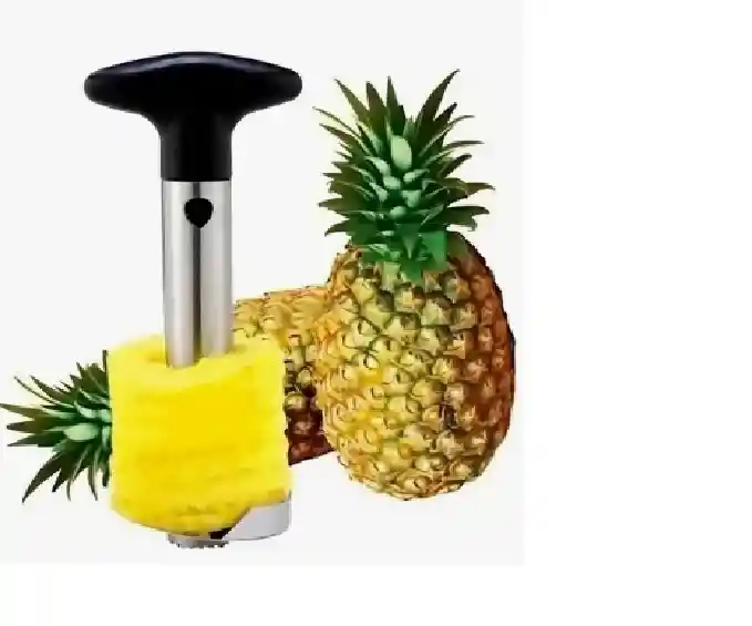 Qué hace este producto? Con este producto vas a poder extraer la piña totalmente rebanada y lista para servir, sin corazón y sin necesidad de pelar la piña. ¿Cómo se usa? Es muy fácil, solo tienes que cortar la corona de la piña, introducir el rebanador y girarlo hasta que llegue al fondo, ahora solo lo extraes y tendrás la piña lista para servir en rebanadas. Especificaciones: Material: Acero inoxidable. Dimensiones: 25 x 9.5 x 9 cm