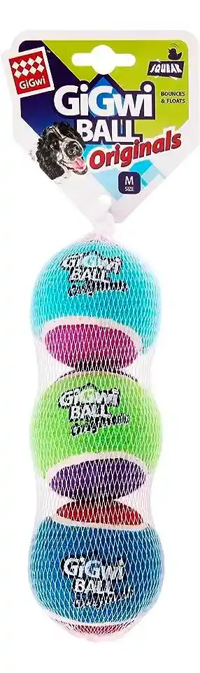 Gigwi Pelota de tenis chirriante para perros, pelota interactiva para perros pequeños y medianos, juguete de goma colorido y de rebote alto de 2.5 pulgadas (paquete de 3)