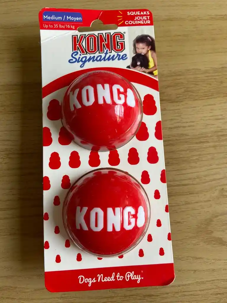 Pelota Kong por 2 Unidades Mediana, para perros entre los 9 kg y los 16 kg