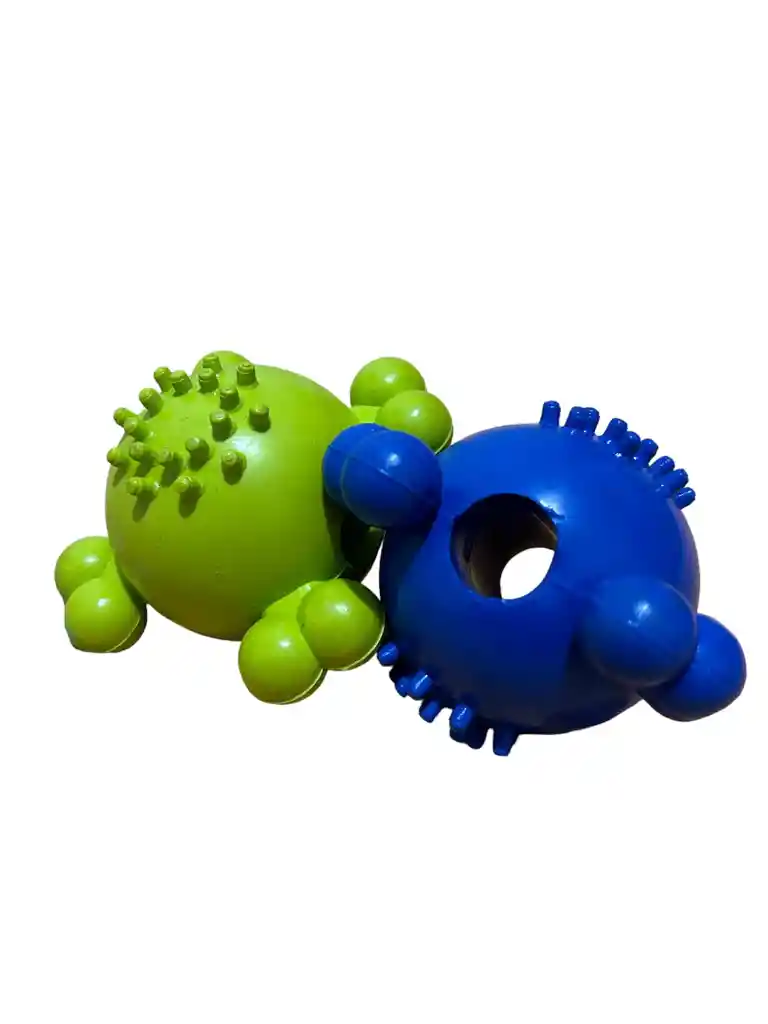 Pelota maciza interactiva, con orificios para guardar comida y puntas que ayudan a la limpieza de dientes