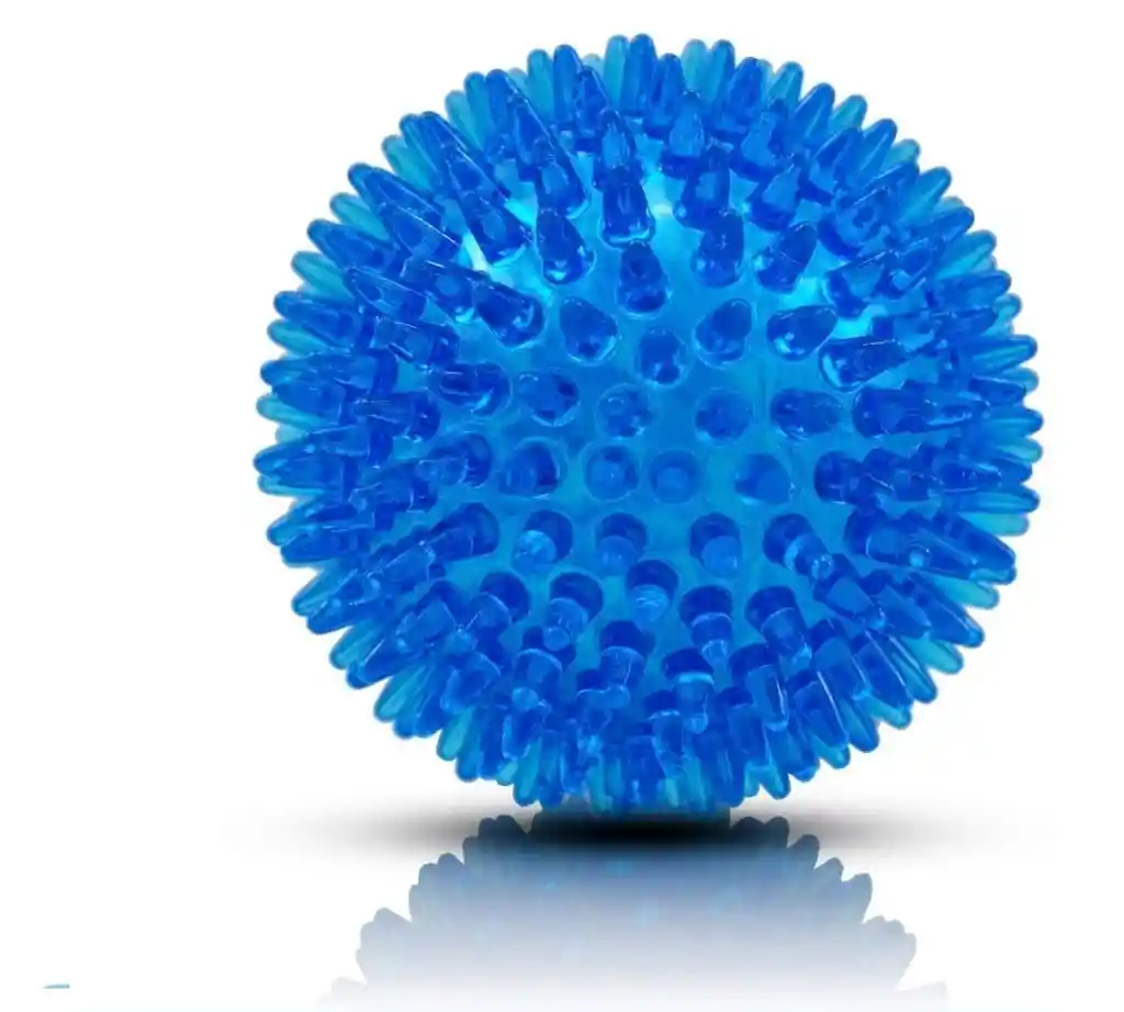 Resistente pelota con sonido al presionarla, ideal para perros grandes y medianos.