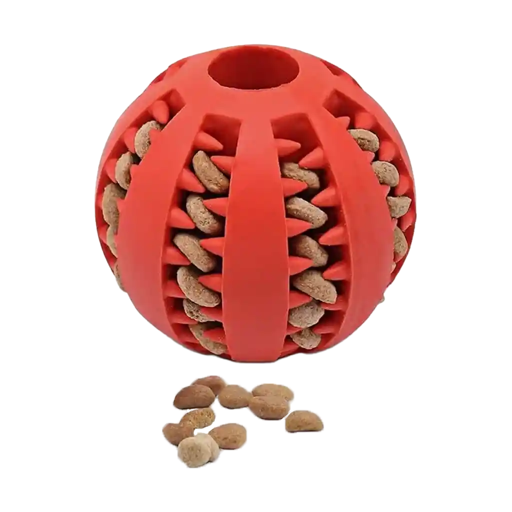 Pelota rasca encías. Agrega croquetas, snack deshidratado o alimentos húmedo para mantener a tu peludo entretenido.
