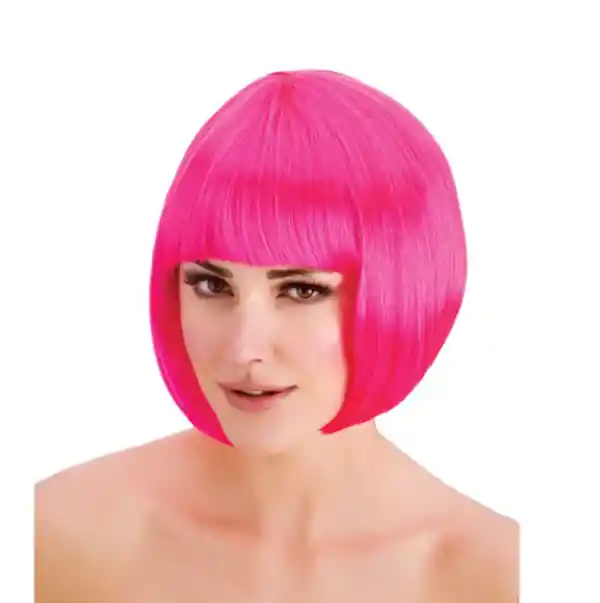 Peluca corta fucsia para disfraz de halloween en cabello sintético. Medidas: 30 cm