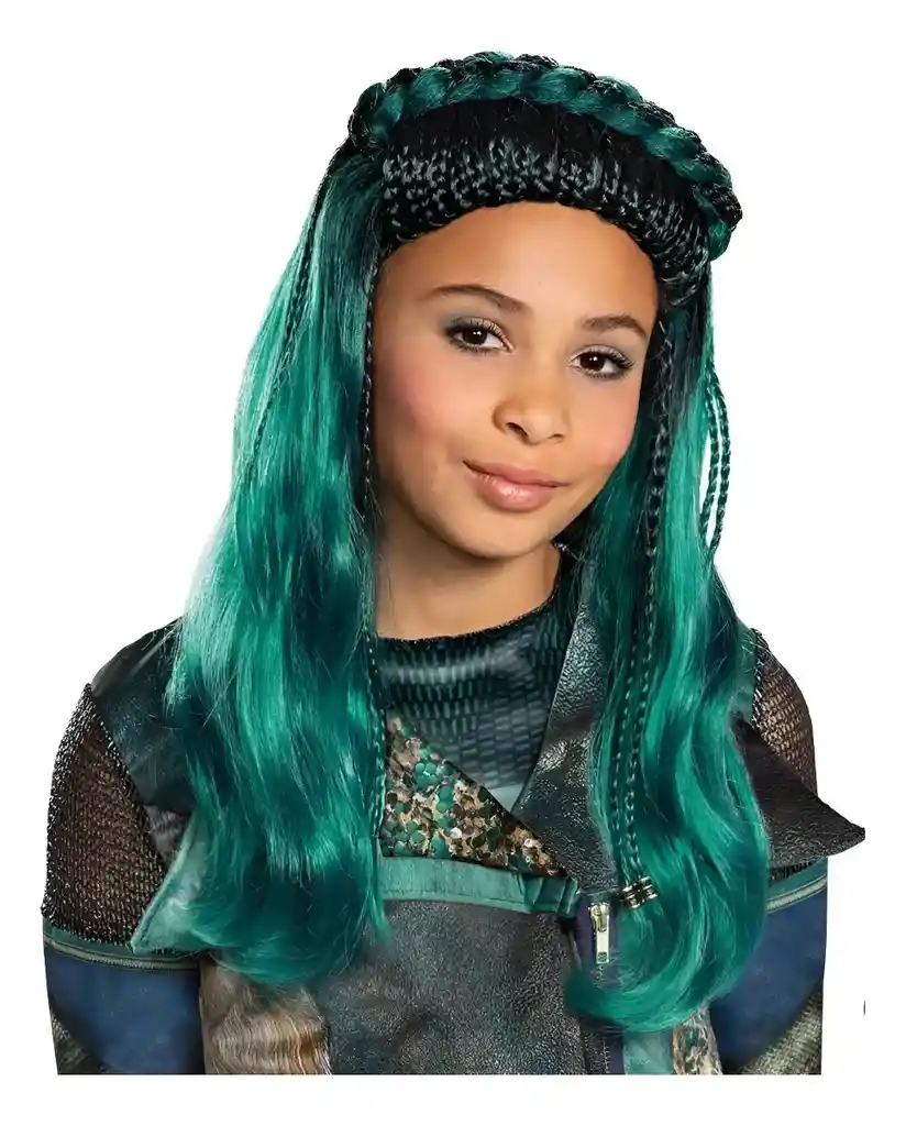 Reflejos una peluca Ajustable para adaptarse Presenta rizos sueltos y verde azulado. Licenciado oficialmente Descripción ¡Completa tu elegante disfraz de Uma de Descendientes 3 con esta peluca de Uma! La peluca presenta el característico cabello verde azulado de Uma con rizos sueltos. ¡Cuenta con correas ajustables en el interior para garantizar un ajuste adecuado y permanecer quieto toda la noche! ¡Te encantará usar esta peluca y lucir como Uma en Descendientes 3 este Halloween! Sin garantía