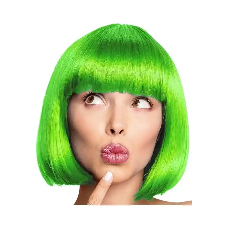 Peluca de pelo liso con capul ideal ara adultos y niñas color Verde pelo sintético si deseas algo adicional indícanos y con gusto te colaboramos