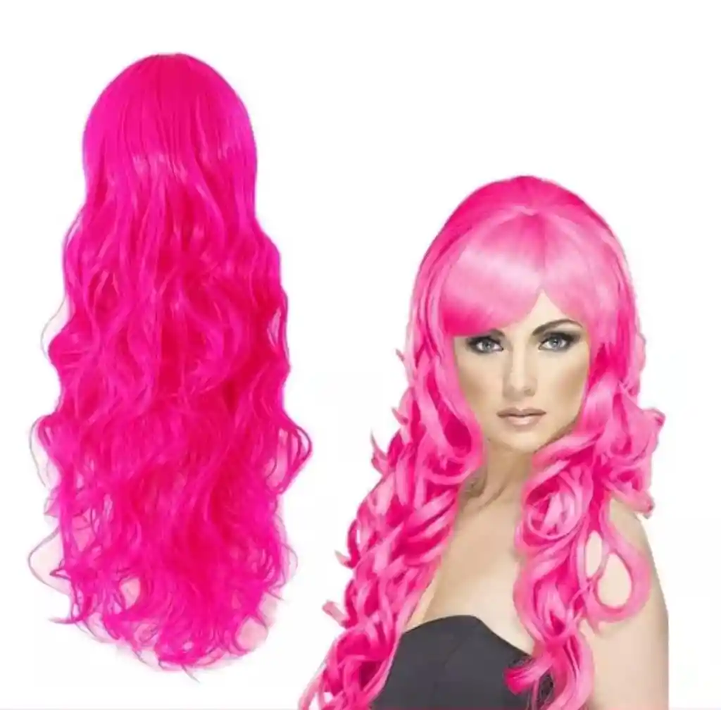 PELUCA LARGA ONDULADA FUCSIA NEON ACCESORIO HALLOWEEN