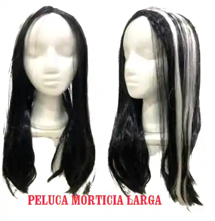 peluca morticia larga negro con blanco.