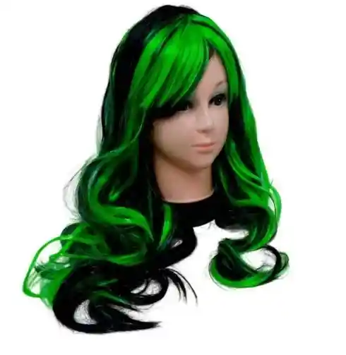 👱♀️ Peluca Negra Con Mechones Verdes Para Hora Loca, Halloween, Carnaval