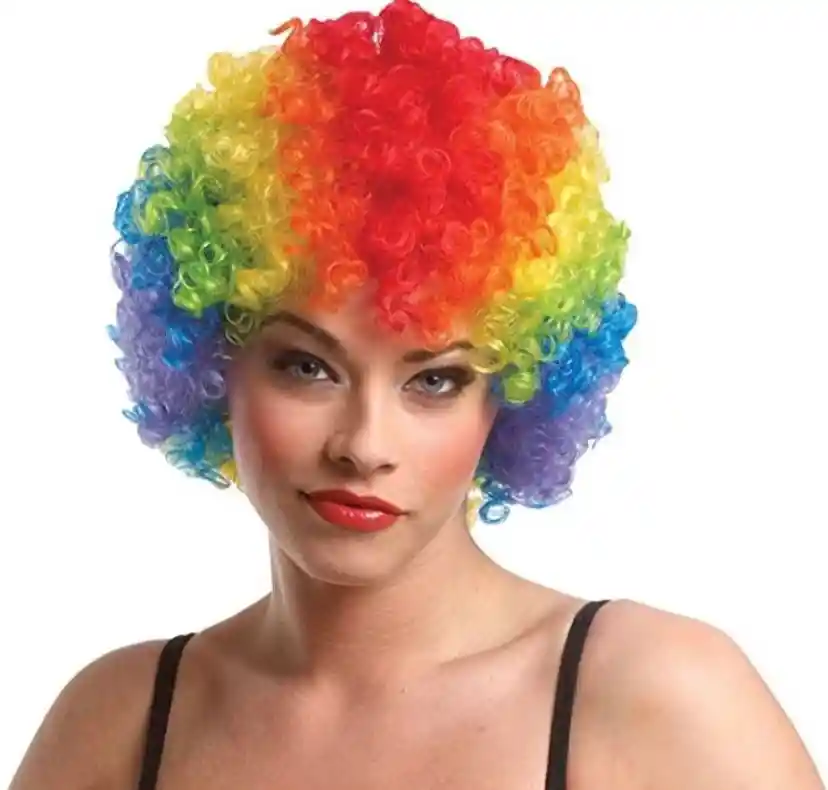 Peluca Payaso Afro Multicolor Divertida peluca de payaso que puedes usar en Fiestas o Halloween. Multicolor, naranja, verde, rosado, blanco Tu compra incluye: 1 x Peluca Payaso Afro Multicolor