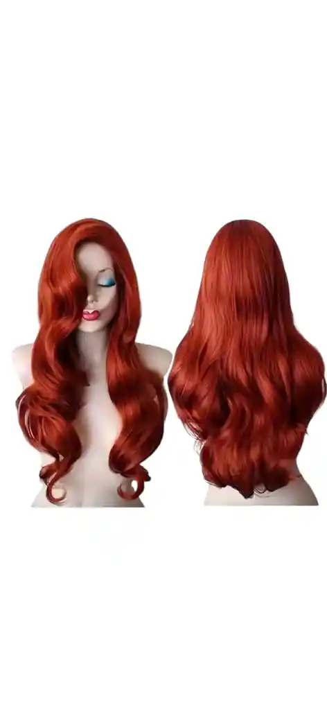 Peluca larga lisa rojo cobriso, con flequillo recto para disfraz de halloween en cabello sintético.